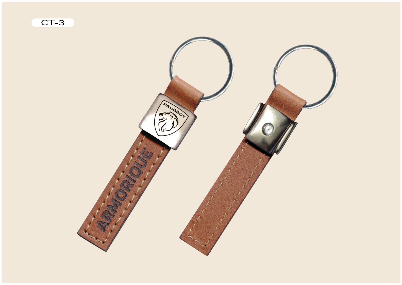 Cuero tira ZAMAC CON COST. Llavero tira de cuero simple con costra y aplique zamak, ambos grabado en láser