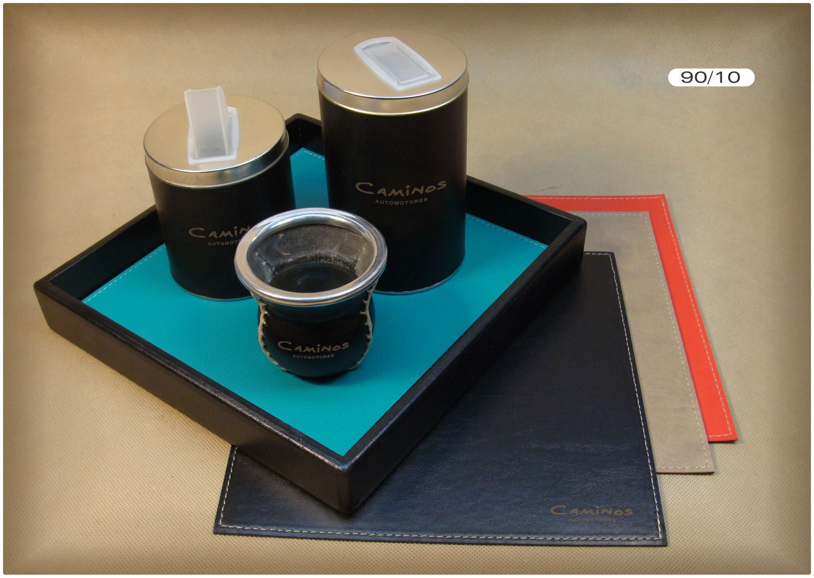 BANDEJA MDF 9 MM, CON LATAS Y MATE LASER. Juego de latas y mate interior vidrio, un grabado láser. En bandeja de mdf pintada 25 x 25 cm. SIN MANTEL.