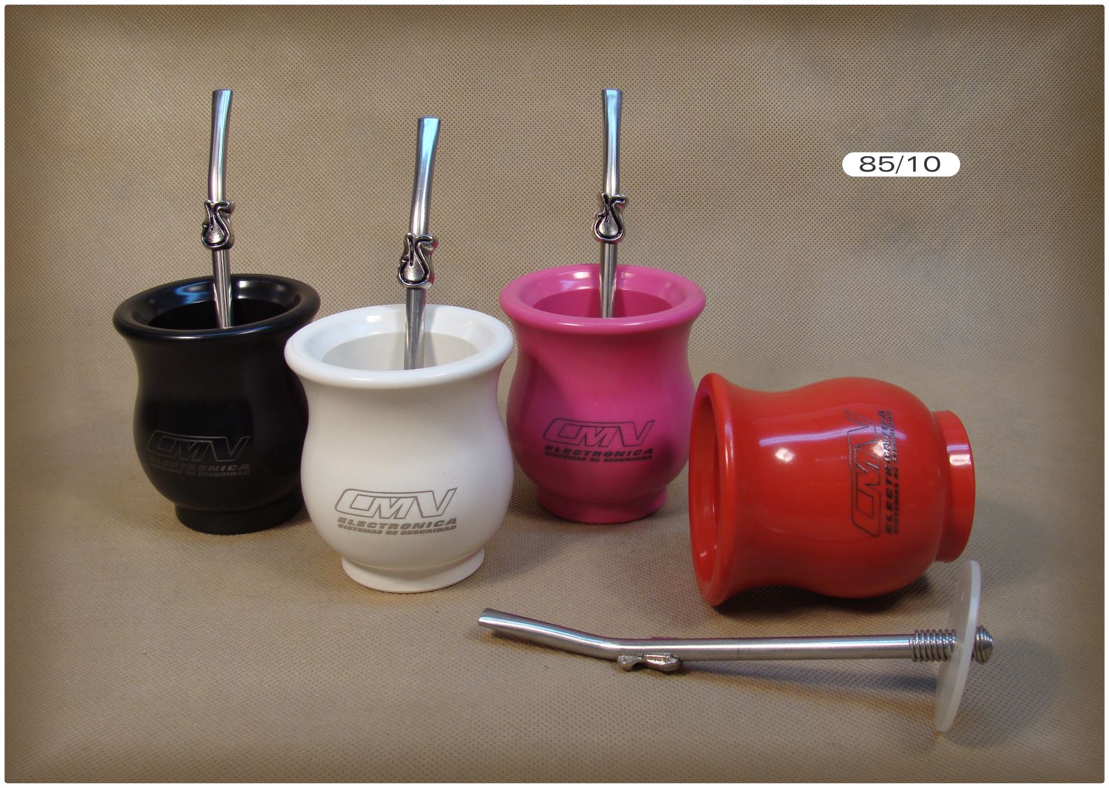MATE CON BOMBILLA., práctico sistema de vaciado, en alto impacto varios colores, grabado láser.