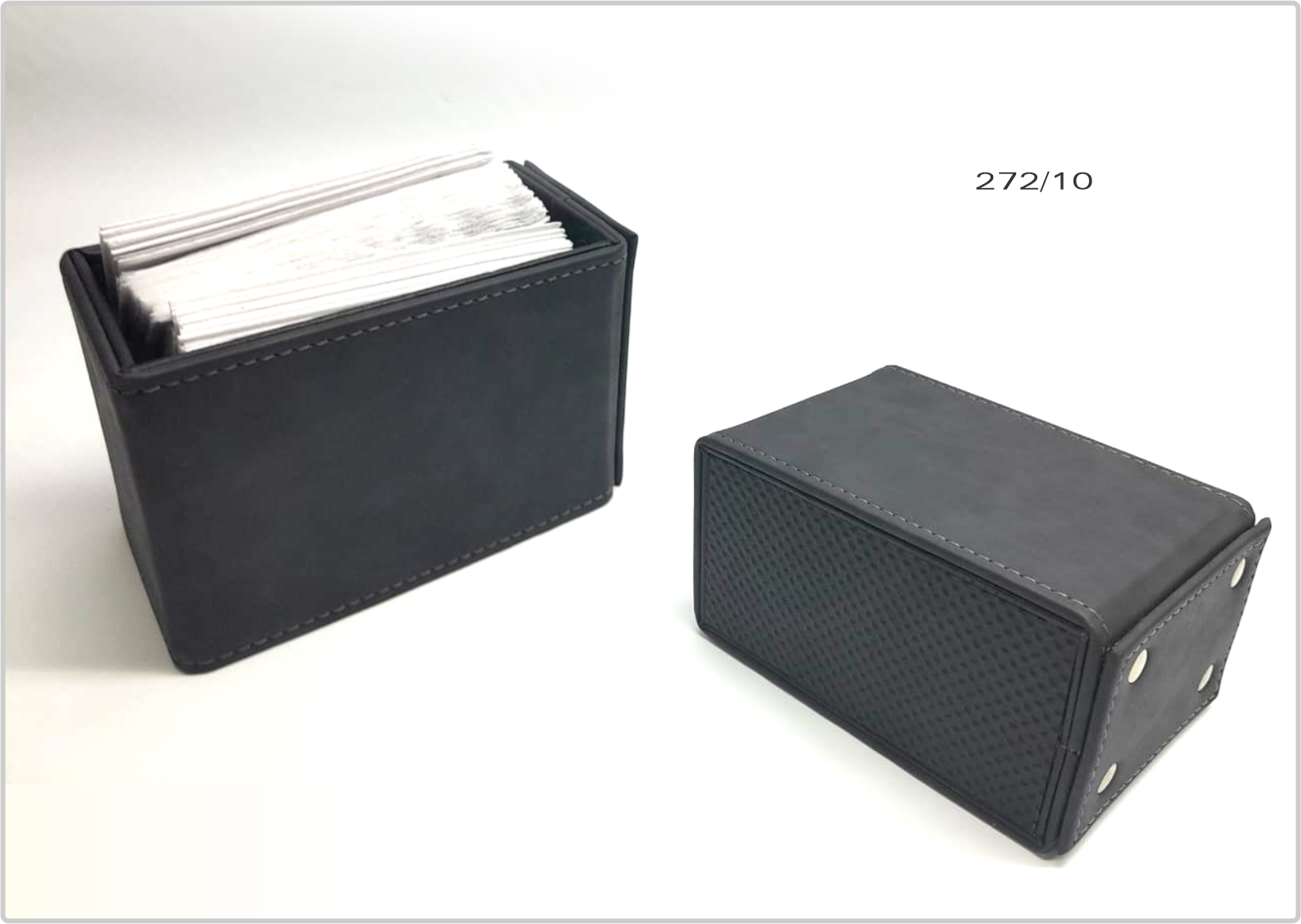 SERVILLETERO CAJA, de cuero ecológico. Un grabado láser. Medida: 15,5 x 10 x 8 cm.