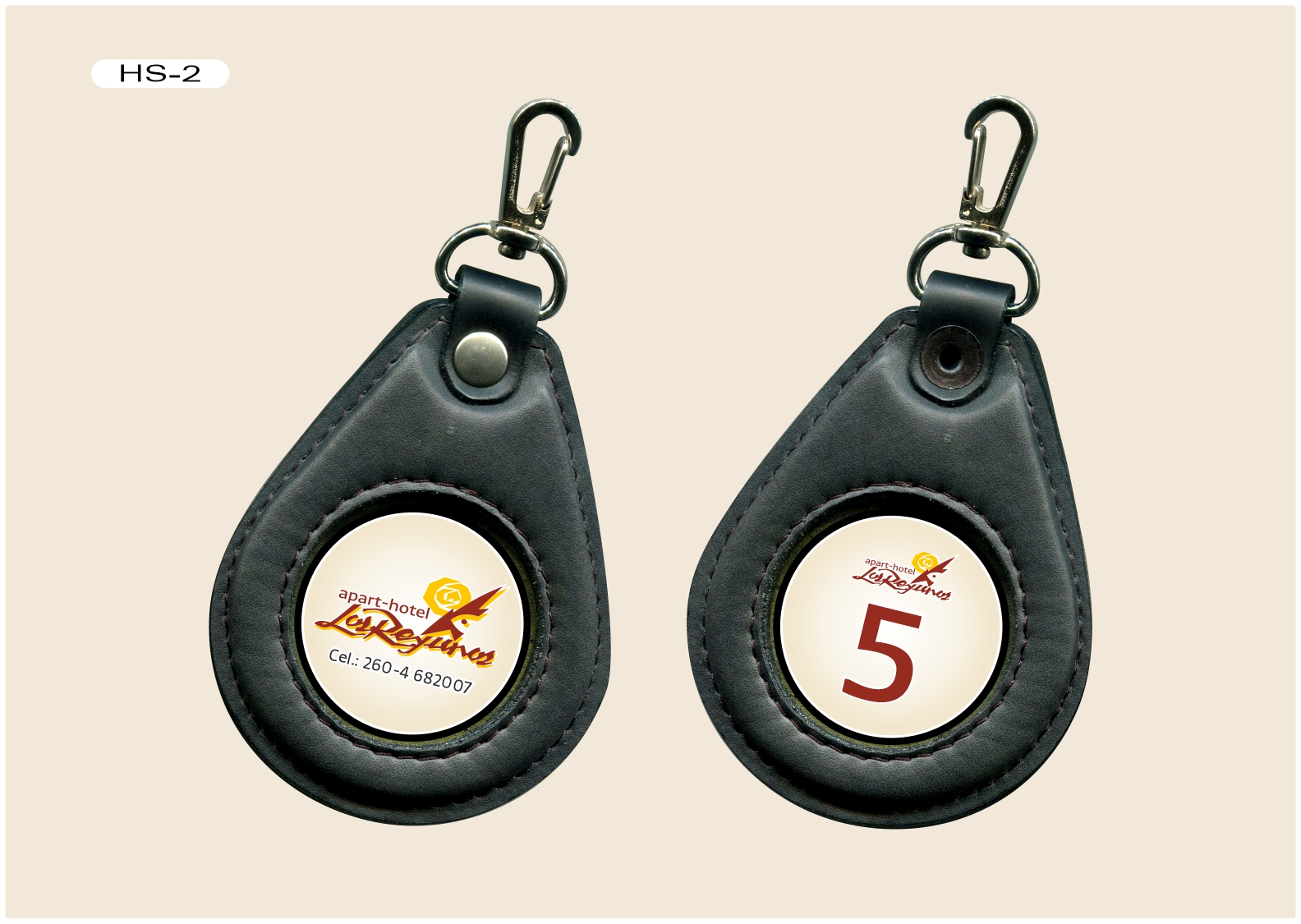 Llavero grande numerado, se pude sumergir y flota con una llave. Frente logo y dorso numeración. De cuero ecológico y doble ventana acrílica full color.